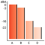 tabeli, pri čemer osnovni nivo (0 dBA) predstavlja